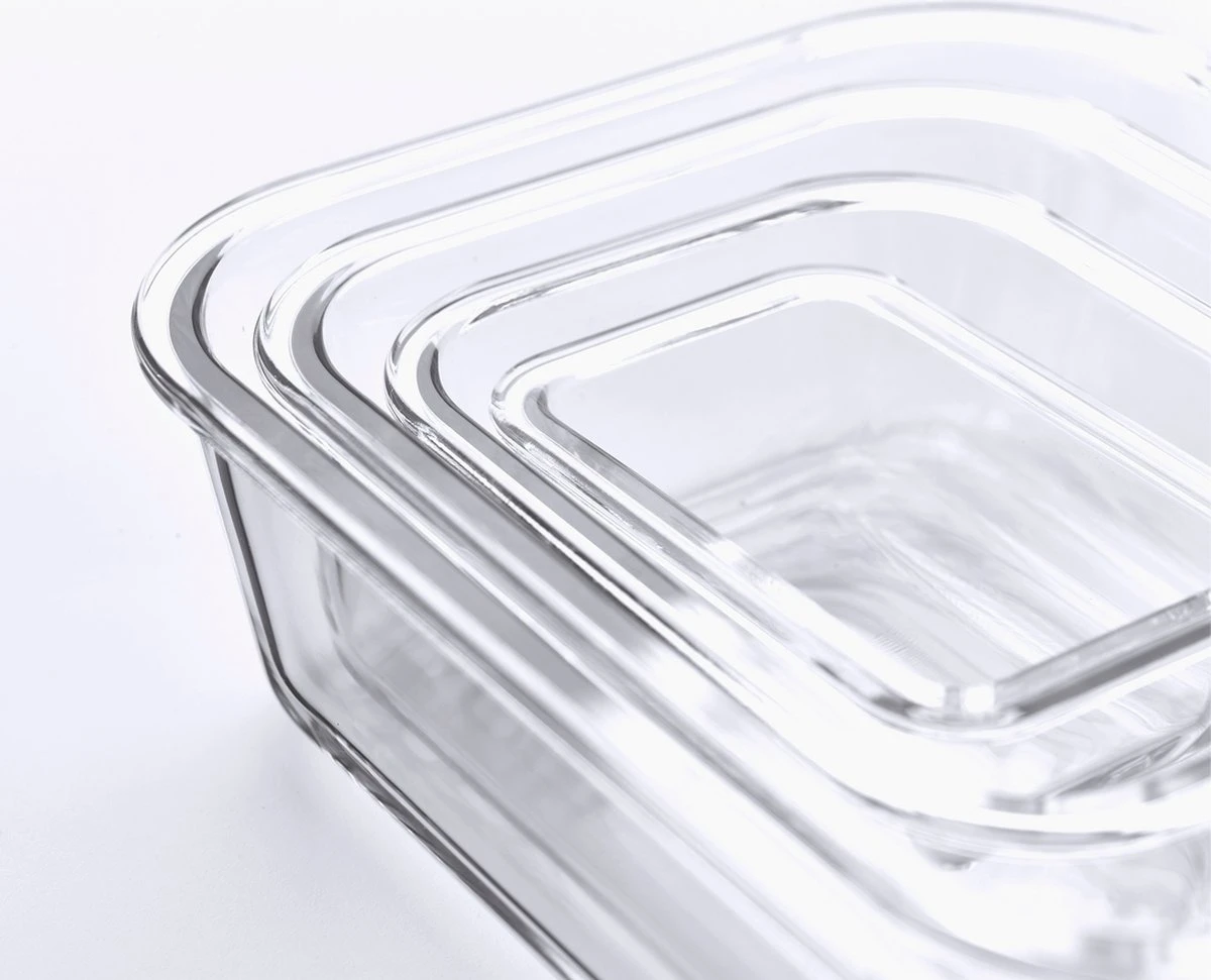Praktische set van 4 glazen ovenschalen met deksel. De schalen zijn zonder deksel vriezer-, vaatwasser-, oven- en magnetron bestendig. Net zoals alle producten uit de Nest serie zijn ook deze ovenschalen en deksels in elkaar te stapelen.