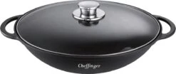Het merk Platinum maakt hoogwaardige kwaliteits pannen die voorzien zijn van een glazen deksel. Deze wokpan is geschikt voor inductie en kan voor verschillende doeleinde gebruikt worden om de lekkerste gerechten te bereiden. De zwarte Platinum wokpan heeft een diameter 36 centimeter en is 9,5 centimeter hoog.
