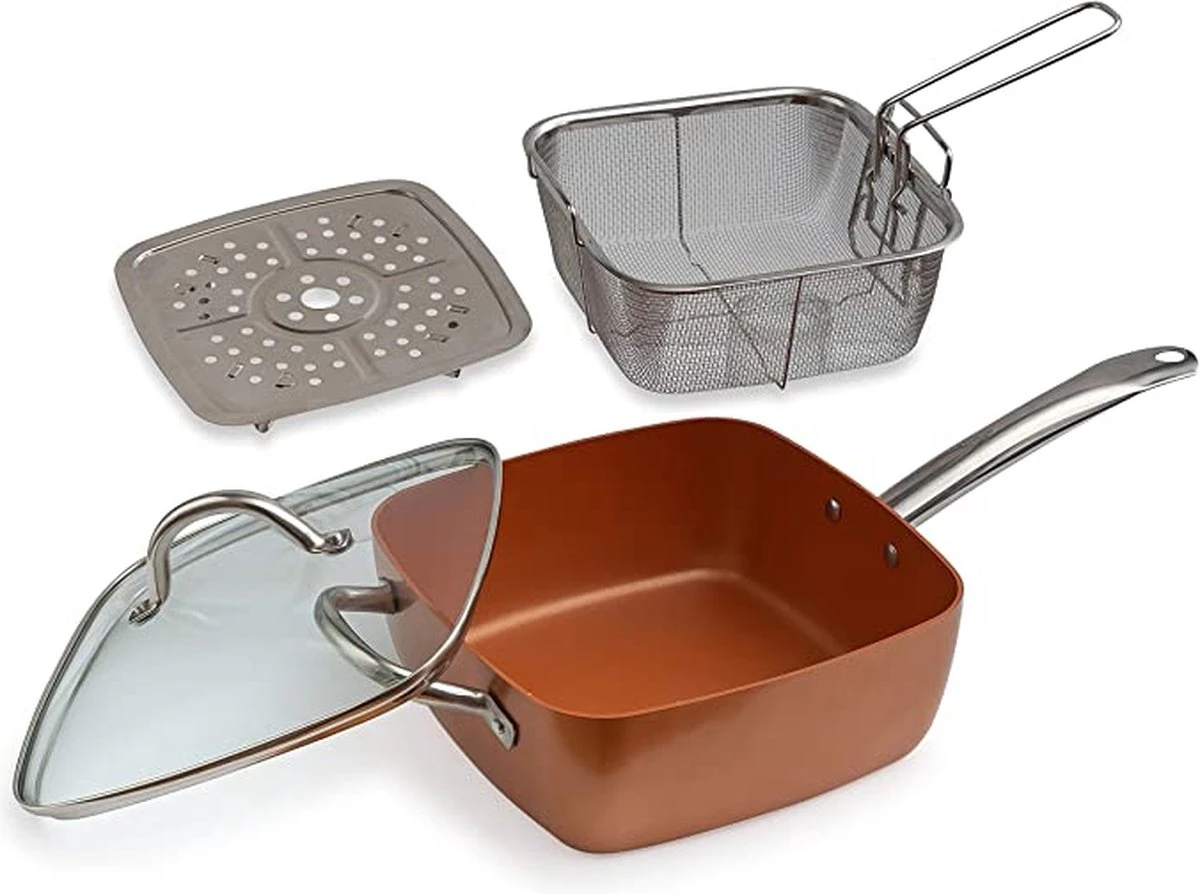 Nuovva Koperen Frituurpan, Met Diepe Zijkanten & Deksel