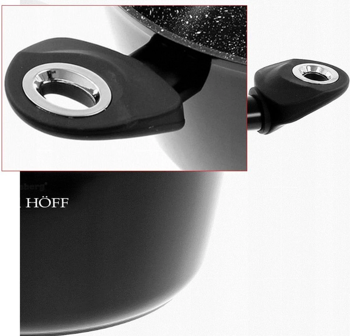 Pannenset 15-delig met marmeren coating. Pannen zonder giftige stoffen, gemakkelijk schoon te maken en geschikt voor alle warmtebronnen. De pannen zijn vervaardigd van hoogwaardig aluminium en de deksels zijn voorzien van een gaatje voor stoomafvoer.