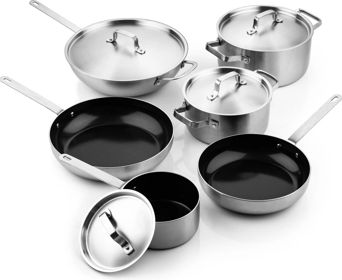 Deze set stelt jou in staat om jouw ingrediënten lekker te wokken, bakken, koken, braden en stoven. En om het echt compleet te maken, kun je jouw gerecht aftoppen met een smaakvolle saus. Bovendien zijn de sauspan, wokpan en kookpannen uitgerust met een RVS deksel. Dus ook als je de ingrediënten rustig wil laten doorgaren is dat geen probleem. Verder bevatten de pannen van Soenil by ISENVI een unieke en gezonde keramische antiaanbaklaag. Je hebt hierdoor een stuk minder olie en/of boter nodig, en de ingrediënten blijven niet aan de pan kleven.