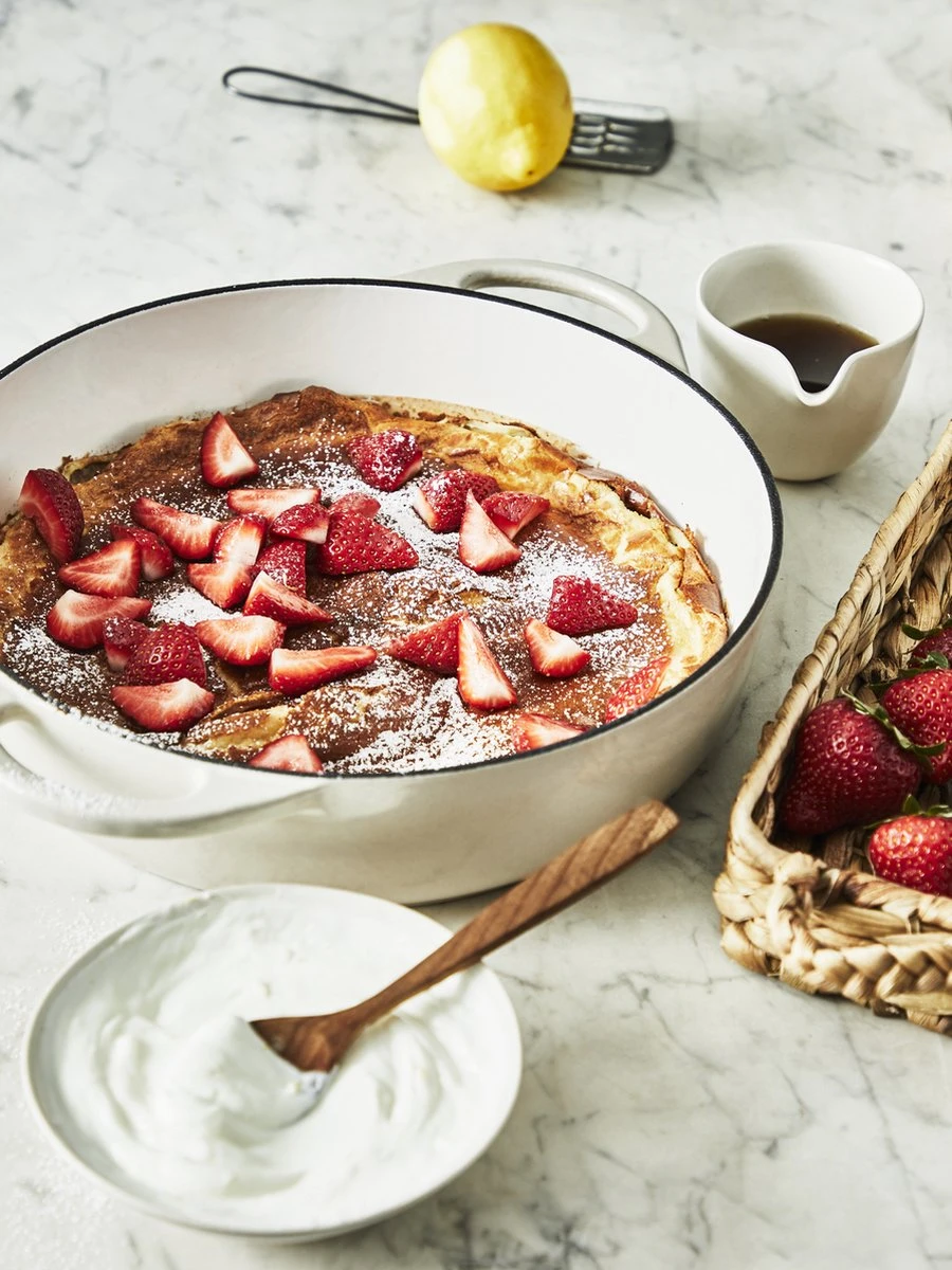 - Robuuste geïntegreerde handgrepen voor een veilige hantering van kookplaat tot tafel