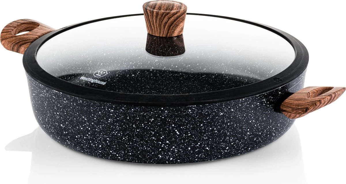 De Westinghouse Zwart Marmer Hapjespan Speciale Editie 28cm mag niet ontbreken aan jouw pannencollectie. De hapjespan is ideaal voor het bereiden van bijvoorbeeld eenpansgerechten, een lekkere risotto, paella of een heerlijke pastasaus. De pan is gemaakt uit aluminium en licht in gewicht. Zo verplaats je de hapjespan gemakkelijk van de warmtebron rechtstreeks naar de tafel. Deze pan is ideaal om te gebruiken voor bijvoorbeeld stoofpotjes en eenpansgerechten.